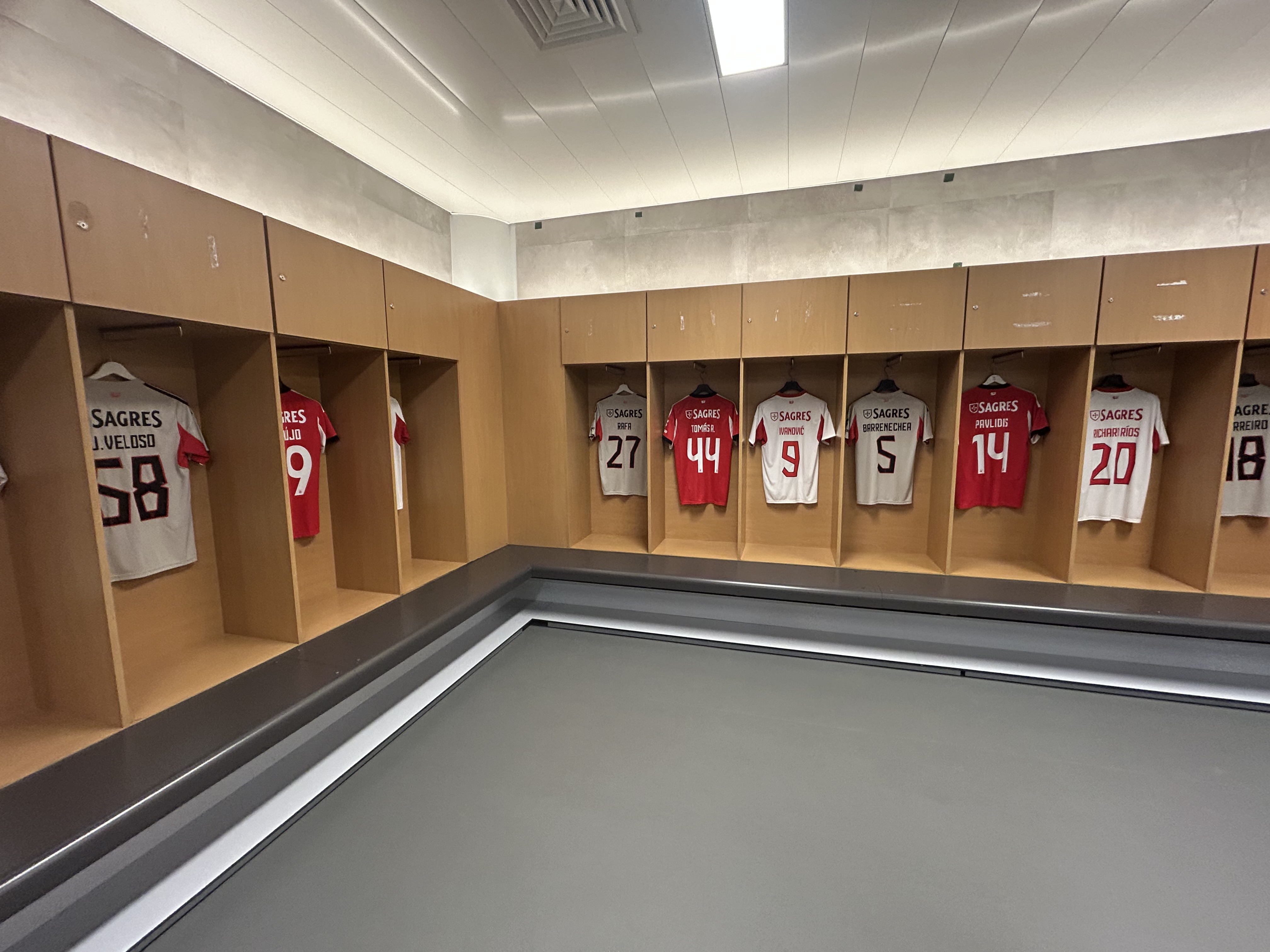 Peek inside the locker rooms where champions prepare for battle. The atmosphere, from the benches to the team insignia, lets you imagine the intensity before a major match. It’s an intimate behind-the-scenes glimpse of Benfica’s spirit.