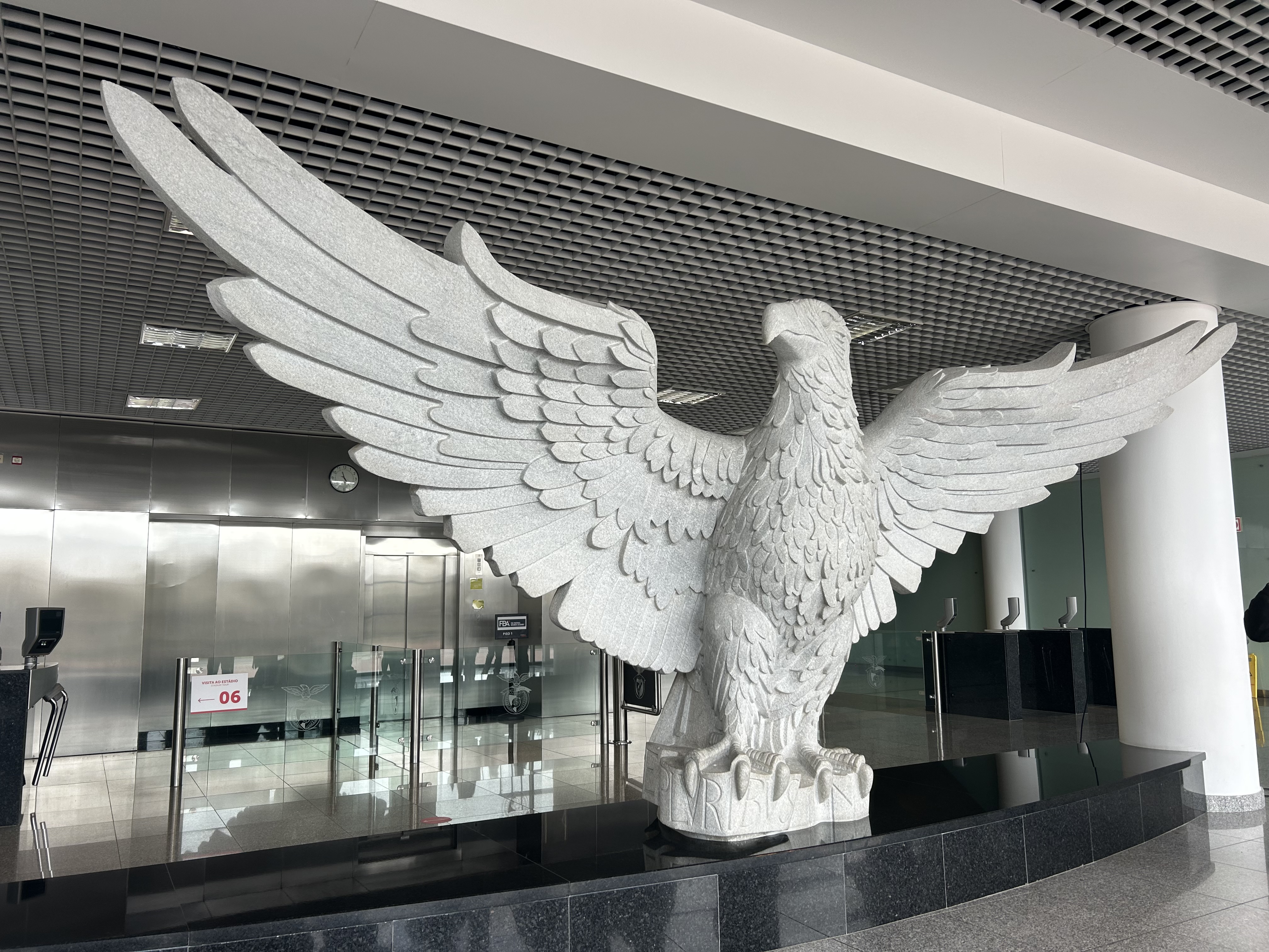 Don’t miss out on SL Benfica’s crest during your visit to the stadium. Did you know that the three stars above the eagle represent 10 national titles each? Fun fact: the team has won 37 so far, and a fourth will be added once they make it to 40.
